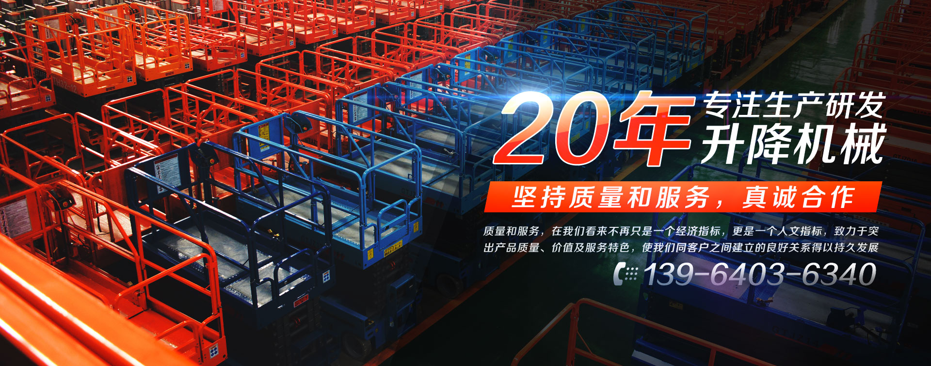 年是国内生产液压升降平台及升降机的专业厂家。本厂生产设备先进,技术力量雄厚,工艺流程先进合理,检测手段齐全。产品选用液压泵站系统和液压系统防爆装置和液压自锁装置。具有设计新颖、结构合理、升降平衡、操作简单、维修方便等其他产品不可替代的优点。广泛用于厂房维护、工业安装、设备检修物业管理、仓库、航空、机场、港口、车站、机械、化工、医药、电子、电力等高空设备安装和检修。 本公司的产品共有八大系列六十多个品种,主导产品是SJY系列剪式液压升降平台、SJT液压升降机货梯、SJYC液压升降车、SJYL系列铝合金升降平台及液压固定式登车桥、电瓶车等……,欢迎广大客户前来选购